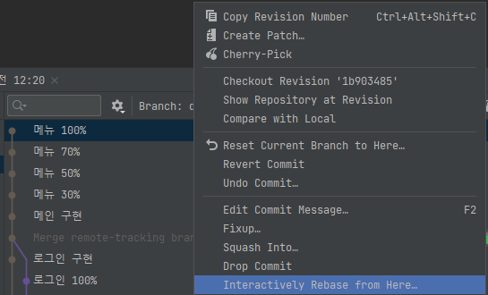 메뉴 기능을 구현하는데 총 4개의 커밋이 있다고 가정하자.