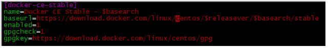 해결방법은 /etc/yum.repos.d/docker-ce.repo 파일을 켭니다.