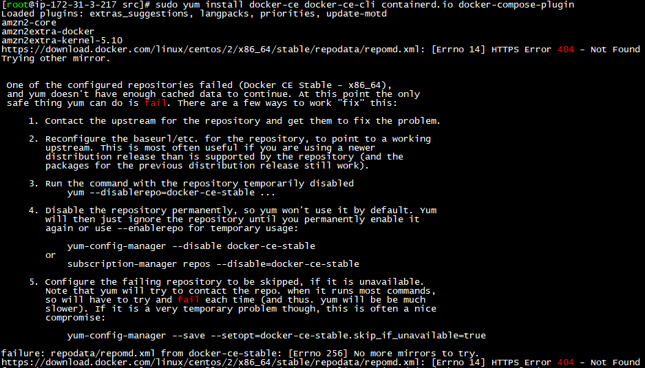 sudo yum install docker-ce docker-ce-cli containerd.io docker-compose-plugin